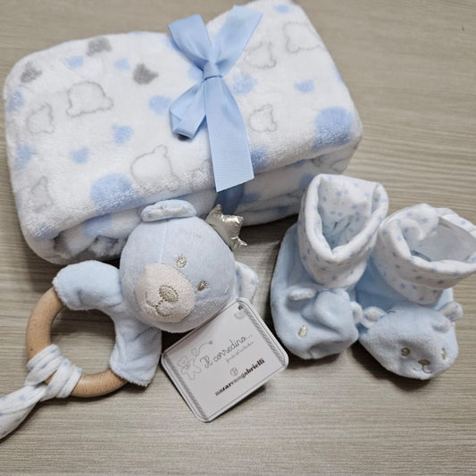 Set per neonati - Copertina+babbucce+sonaglino (Il Regalo Perfetto!)