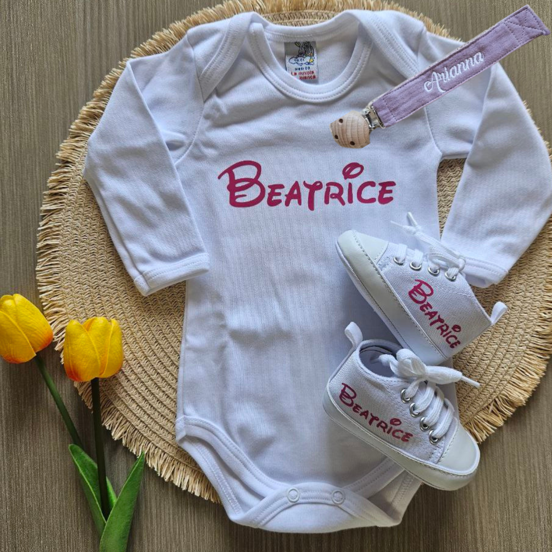 Bundles Incantato: Catenella portaciuccio+Body con nome+Scarpette