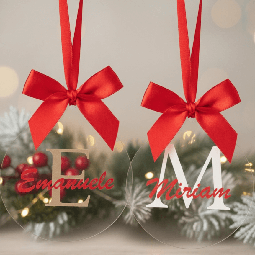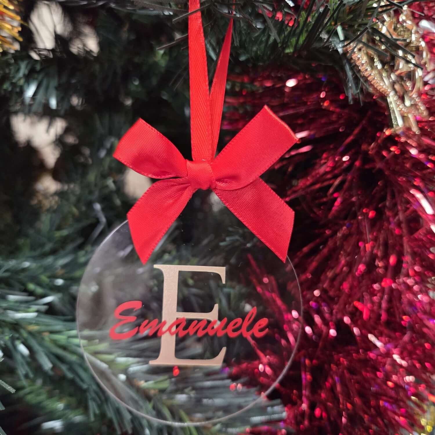 Rendi speciale il tuo Natale con le nostre eleganti palline in acrilico trasparente, personalizzate con il nome che desideri. Un dettaglio unico che celebra i tuoi affetti e aggiunge un tocco di magia al tuo albero.