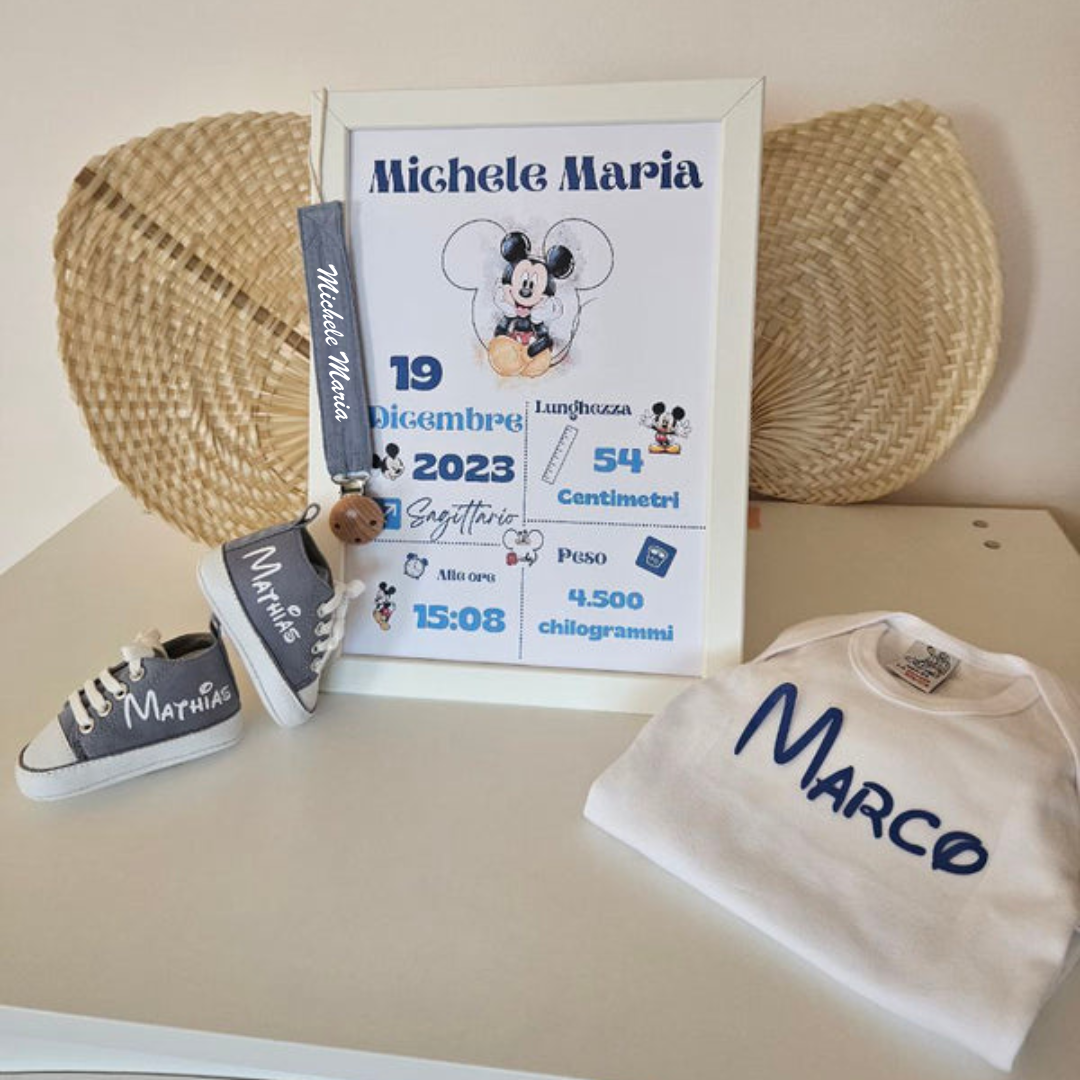 ✨ Cornice Personalizzata + Catenella Portaciuccio+Scarpette+Body